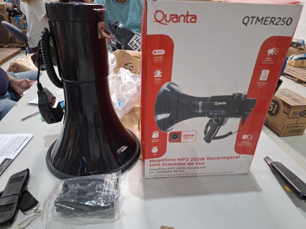 MEGAFONE MP3 RECARREGÁVEL COM GRAVADOR, QUANTA, QTMER250, PRETA (1 UNIDADE - NOVO - TA.517002). // CAIXA DE SOM PORTÁTIL, JBL, FLIP 6, PRETA (1 UNIDADE - NOVO - TA.524259). // ALEXA ECHO DOT, ALEXA, ECHO DOT, PRETA (1 UNIDADE - NOVO - TA.545802). // CAIXA DE SOM, TRONSMART, T7, PRETA (1 UNIDADE - NOVO - TA.568322). // CAIXA DE SOM, JBL HARMAN, SOUDFLY AIR, BRACO/PRETO (1 UNIDADE - NOVO - TA.568055). // CAIXA DE SOM, MIFA, A90 SPEAKER, PRETA (1 UNIDADE - NOVO - TA.507292).
