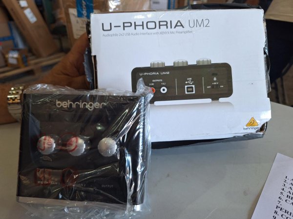 AUDIOPHILE 2X2 USB AUDIO INTERFACE, U PHORIA, UM2, PRETA (1 UNIDADE - NOVO - TA.475243). // CAIXA DE SOM BLUTOOTH, BLITZWOIF, BW - WA3, PRETA (1 UNIDADE - NOVO - TA.567452). // MICROFONE SEM FIO, JBL, HARMAN, PRETA (1 PAR - NOVO - TA.695258). // AUDIOPHILE 4X4 24 BIT/192, BEHRINGER, UMC404HD, PRETA (1 UNIDADE - NOVO - TA.629379).