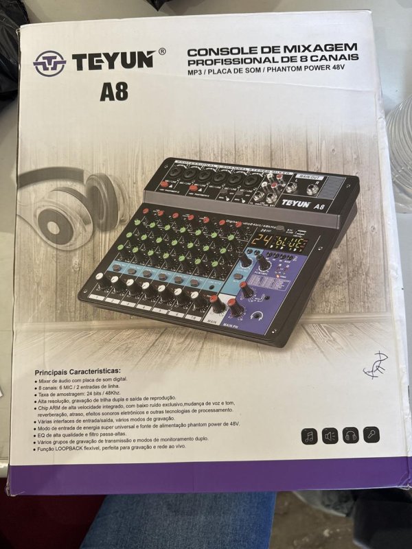 CAIXA AMPLIFICADOR, SHELDON, GT1200, MARROM (1 UNIDADE - NOVO - TA.418783). // MULTIMÍDIA, PIONEER, DMH-G228BT, PRETO (1 UNIDADE - NOVO - TA.421766). // AMPLIGAME A8, FIFINE, A8, PRETO (1 UNIDADE - NOVO - TA.421805). // SISTEMA DE MICROFONE DUPLO SEM FIO, CE, 1622, PRETO E DOURADO (1 UNIDADE - NOVO - TA.438206). // TOCA DISCO, RAVEO, STUDIO PLUS, MADEIRA (1 UNIDADE - NOVO - TA.584157). // CONSOLE DE MIXAGEM PROFISSIONAL 8 CANAIS, TEYUN, A8, PRETA (1 UNIDADE - NOVO - TA.674441). // AMPLIFICADOR DIGITAL, STETSOM, VULCAN 2000 E 1200, PRETO (2 UNIDADE - NOVO - TA.629736). // AMPLIFICAFOR DE POTÊNCIA, AIYMA, A08PRO, PRETA (1 UNIDADE - NOVO - TA.474909). // SOM AUTOMOTIVO, PIONEER, MVH-S218BT, PRETO (1 UNIDADE - NOVO - TA.734476). // CONSOLE DE MIXAGEM 8 CANAIS, TEYUN, A8, PRETO (1 UNIDADE - NOVO - TA.656536).