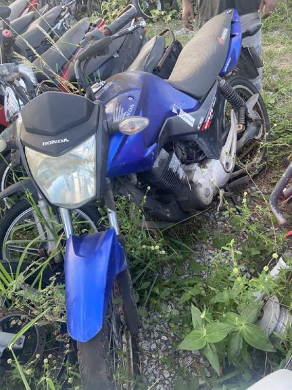 HONDA/CG150 FAN ESDI, ANO/MOD 2014/2014, COR AZUL, COMBUS ALCOOL/GASOLINA, PLACA OHG1842-AL, RENAVAM 997764929, CHASSI 9C2KC1680ER506076, Nº MOTOR KC16E8E506076. OBSERVAÇÕES: BANCO RASGADO, TANQUE COM MOSSAS, GUIDÃO AMASSADO, RETROVISORES AUSENTES, VEÍCULO COM DANOS NA PARTE EXTERNA, REGULARIZAÇÃO POR CONTA DO COMPRADOR).