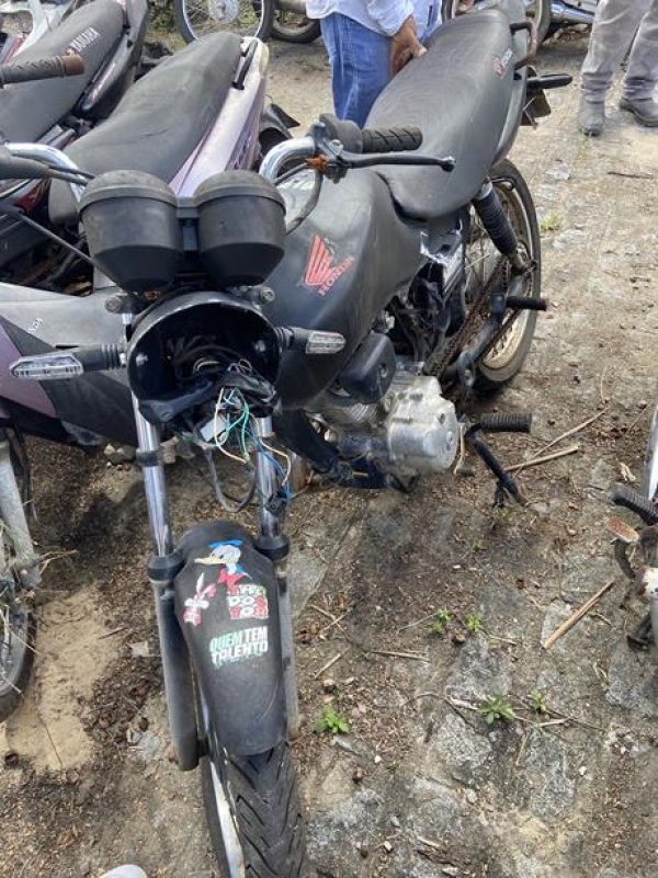 HONDA/CG 160 TITAN, ANO/MOD 2023/2024, COR AZUL, COMBUS ALCOOL/GASOLINA, PLACA RGV2A39-AL, RENAVAM 1365060770, CHASSI 9C2KC2210RR003606, Nº MOTOR KC22E1R003728. OBSERVAÇÕES: RETROVISORES AUSENTES, TANQUE COM MOSSAS, VEÍCULO COM DANOS NA PARTE EXTERNA, REGULARIZAÇÃO POR CONTA DO COMPRADOR).