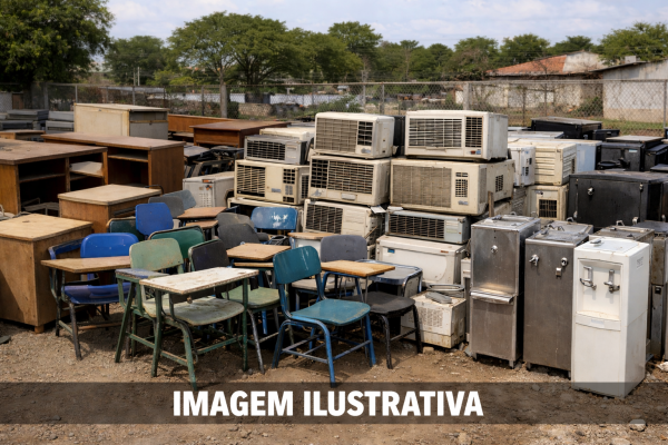 SUCATA DE MATERIAIS DIVERSOS: CADEIRAS ESCOLARES, BIRÔS, AR CONDICIONADOS, BEBEDOUROS.